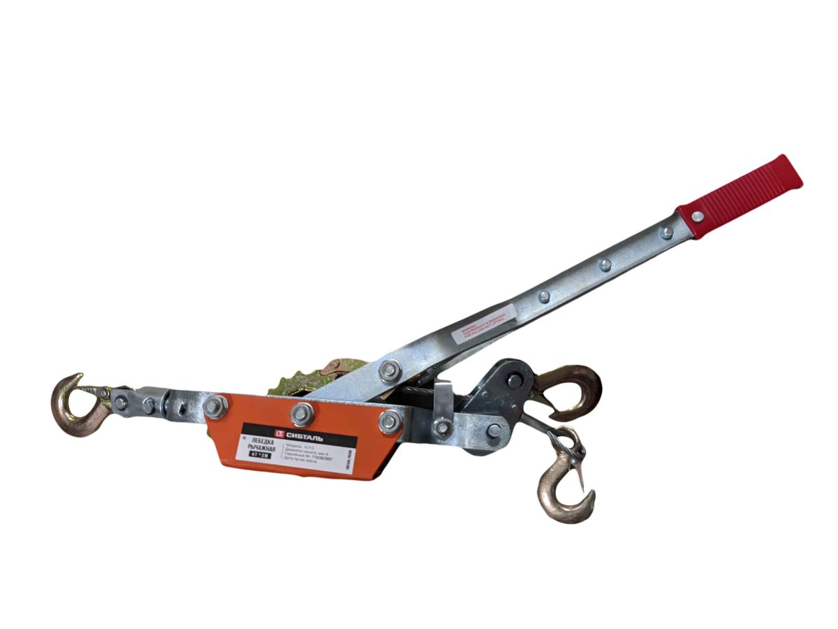 Лебедка рычажная гаражная X2Y3 4т 3м с тросом три крюка СибТаль — это ручная рычажная лебёдка, предназначенная для тяги, натяжения и фиксации грузов в горизонтальной плоскости. Приводится в действие за счёт чередующихся движений рычага, не требует подключения к электросети.Сферы применения: используется при монтажных и такелажных работах, в строительстве, на СТО, при натяжке тросов, а также в полевых условиях, где необходим мобильный и компактный тяговый механизм.Технические характеристики:Грузоподъемность, т 4Диаметр каната, мм 6Масса, кг 3,9Габариты, см 53х29х7Длина каната, м 3Компл. Канатом да